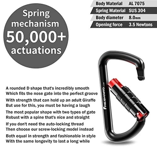 - ใQUALITY CARABINERใ- A very smooth lock and gate surface, and it allows new users not to worry about getting blood blisters or scratching themselves if they are not used to the carabiner; Full refund if you donโt like it, please buy without worry; Package: 2pcs
