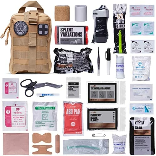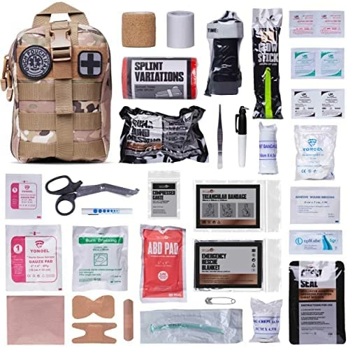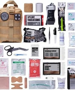 - โ ใULTIMATE FIRST AID & SURVIVAL KITใThe most feature packed IFAK Trauma & Survival Kit on Amazon. All the general first aid items like Knuckle Bandages, Butterfly Bandages, Adhesive Bandages, Sterile Gauze Pads, Antiseptic Prep Pads, Elastic Bandages, Mole Skin, Medical Tape, Burn Dressing, and Gauze. Survival tools like Tweezers, Scissors, Pen Light, Chem Light Sticks, and Emergency Blankets!