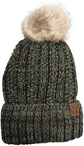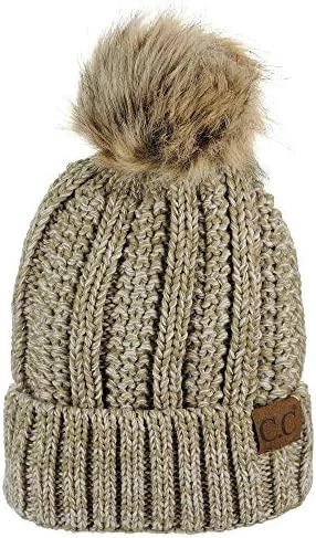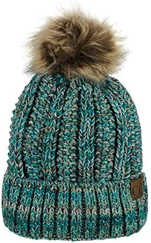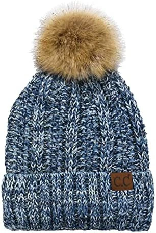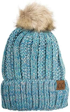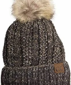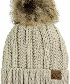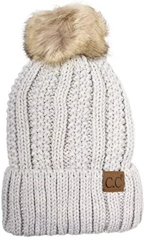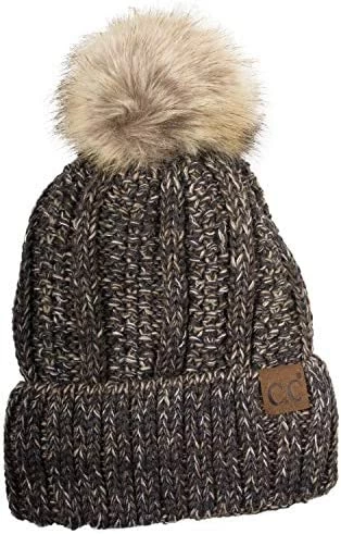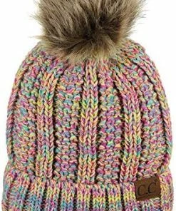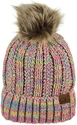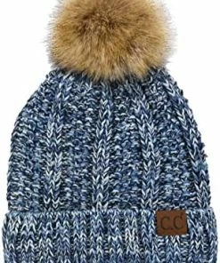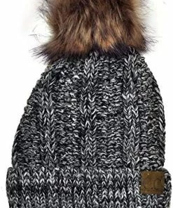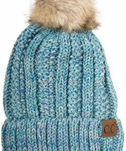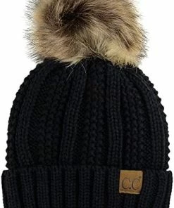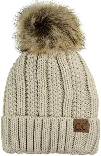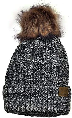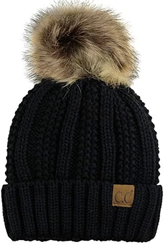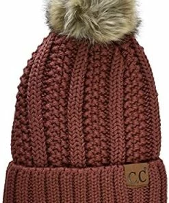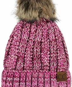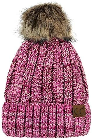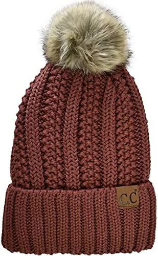 Best deal ๐ C.C Thick Cable Knit Faux Fuzzy Fur Pom Fleece Lined Skull Cap Cuff Beanie Chenille Indi Pink โ