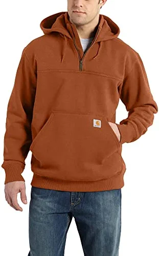 I have had 3 of these over the last 5 years and will be getting my 4th this Christmas. These are hands down the most comfortable/best wearing hoodies I think money can buy. My first is from 2017, I wore dailey throughout the winter months working on a large commercial grain farm. Its still around, tattered, stained, and faded but I still wear it working outside in the dirt and grime. When new these hoodies look very nice, during the winter months is my go to apparel for going out on the town. With the extra collar and quarter zip it makes it look nicer than a plain old hoodie. Also the quarter zip is nice because its not all up under your throat making the neck hole feel small. All in all I’d give this thing 10 out of 5 stars if I could. I dont like winter but breaking out this hoodie for the first cold snap makes it a little better. I’m not a Carhart fanboy, I think some of the stuff theyre doing politically is dumb, but you can’t deny that they make some damn good clothes. For the price you can’t get a better sweatshirt. I’m 5’10”, 240lbs and I wear a 2XL. Its plenty relaxed but isnt baggy enough that it looks like its oversized. Just Buy It!