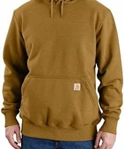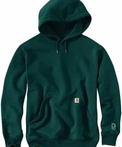 The heavyweight champion of sweatshirts is made of 13-ounce, 80-percent cotton/20-percent polyester fabric and has a rain defender durable water-repellent finish. It is designed with spandex-reinforced rib-knit cuffs and waistband to keep the cold out. There’s an attached three-piece jersey-lined hood with draw cord and front hand-warmer pockets. The carat logo is embroidered on the front left pocket. Rain defender durable water-repellent finish spandex-reinforced cuffs and waistband three-piece jersey-lined hood