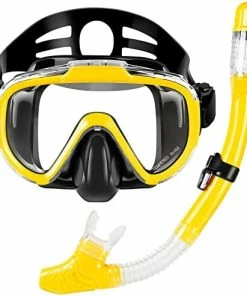 - ใ180ยฐ Panoramic Design, Snorkeling Mask and Snorkel tube Set of 2 in 1ใHD durable impact-resistant anti-fog lenses, dry top silicone snorkel, travel gear bag. Our snorkel set provides you a 180 degree field of vision, and offers superior views for beautiful underwater adventures. Our snorkeling set has the gear you need for snorkeling to help you explore the underwater world cheerfully.