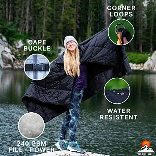 - DURABLE & WATER-RESISTANT : The premium puffy blanket has a durable water resistant coating on its shell to keep you comfortably dry, insulated, and warm against the outdoor elements while remaining tear-proof during your adventures