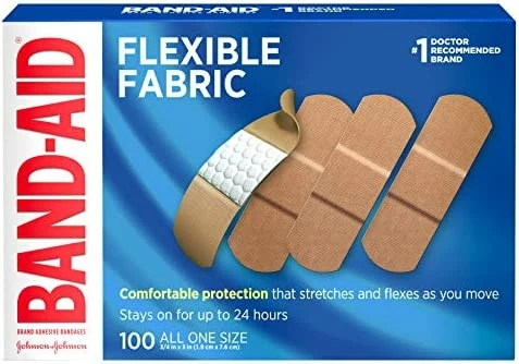- These Band-Aid Brand Flexible Fabric adhesive bandages stay on for up to 24 hours and feature a unique Hurt-Free Pad that won’t stick to the wound as they wick away blood and fluids, allowing for gentle removal