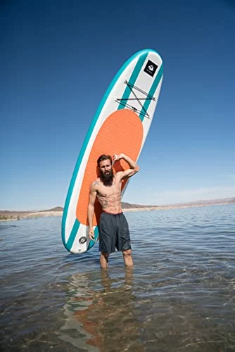 We were hesitant to purchase an inflatable — but don’t have the vehicles to transport full size boards. The cost of inflatables is also preferable. Our expectations were exceeded across the board with this SUP. We used it all summer with zero issues and tons of enjoyment. It takes a little effort to pump it up – but doesn’t take more than 5 or 10 minutes max and you’re ready to go. The stability is awesome, transport is a breeze, deflating piece of cake. We do follow the recommended storage suggestions and only completely deflate the board for transport. It is stable enough in the water for our daughter to use as an in water platform for diving. It really is a wonderful board and looks good too!