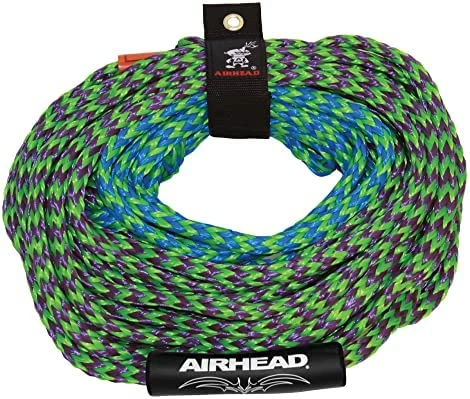 Airhead makes a great quality product line and this rope is up there with the rest of them. Great thickness , adjustable and very little give. Loops on each side makes it super easy to attach. The colors stand out in the water. Tip to tip this is an excellent option to pull your tube.