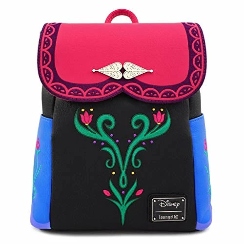 Come out and play with Anna for the first time in forever! Inspired by the Disney animated film Frozen, this Anna mini backpack is sure to impress all Frozen fans! It is made of faux leather with embroidered and printed details. It measures approximately 10-inches wide x 11-inches tall x 4-inches deep.