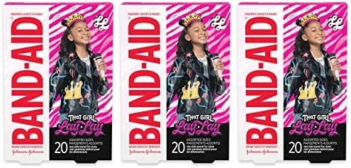 - Character bandages designed with fun Nickelodeon That Girl Lay Lay graphics in adorable and colorful designs with characters from the popular show to make first aid more fun for your child