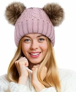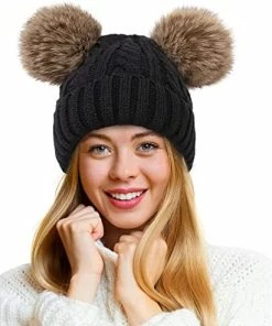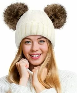 - Stylish Design: This cute winter knitted hat features an adorable double pompom made of beautiful faux fur; The pompom “ears” create an irresistibly sweet and super stylish look that’ll instantly make any winter outfit look extra stylish and gives off a youthful, cute vibe