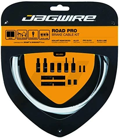 After working as a mechanic for several years, I got a bit jaded on aftermarket cable kits versus OEM Campy/Shimano kits.Well, for one, they’re expensive for what you get, especially the Campagnolo kits. No sealing, pretty basic stamped-steel bushings, and the same coiled cable housing that’s been used for a century. Plus, your choice of black or white.I’ve been using Jagwire kits for a decade now, back when they had a Kevlar road kit, which is still going strong on one of my road bikes with occasional inner cable replacement. The housing is pre-lubed and the inner wire is very, very smooth, but what really makes the deal is the assortments of bushings they provide and their sturdiness in cable bosses. Long-nose for open runs along the top/down tubes, and machined aluminum bushings, including their POP ones for V-Brakes, at the caliper. I save the extras for other builds I’ve done.With this particular set, I’ve been using them for a few years on a hybrid mech/hydro setupโTRP levers and TRP Hy/Rd calipers on a Raleigh RXS, which is intended for a full-hydro line. They give you enough housing to run the full length housed. The housing comes in a single piece, with more flexible, traditional coiled housing at either end, for getting the cable to the levers. Otherwise, its a very stiff, zero compression housing. I really can’t tell that my brakes aren’t full hydro if it weren’t for the lack of hassle and bleeding. The inner cables, aside from the smooth polishing, aren’t anything fancy but they really minimize drag. One caveat from installing another set on a different bike: the inner cable heads do NOT fit Campagnolo Ergo levers without a lot of filing (and yes, I did file them down, that’s how much I love these).Kit comes with a pair of nice rubber bumpers so you don’t have to put adhesive squares on your head tube, and a couple retainers that clip the cables together that reduce rattling. Minor little things that make your bike a little quieter (“like the zen of the wind,” as my old boss used to say)Color selection is nice, too. Ice gray on my neon yellow bike and flat black on my…well, flat black bike. The Bianchi green matches their frame paint well.Last thing: the instructions included are absolutely terrible, but if you know how to replace cables, you don’t need them. Just use the bushings that fit, and for god sake, use a real Park cable cutter. Other than that, these are a great upgrade from OEM Campy/SRAM/Shimano cables without the expense and diminishing returns of something exotic like Ashima.