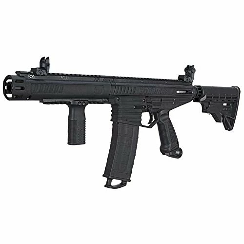 - TIPPMANN STORMER ELITE DUAL FED MILSIM STYLED .68 CALIBER PAINTBALL MARKER – Semi-Automatic – Adjustable from 250-325 FPS – Barrel Thread: A5 – Proven, In-line Bolt Design – Internal Gas Line – High-Impact Composite Body – Multiple Picatinny Rails – High-Performance Barrel – Bottom Mounted ASA – Single Trigger – Offset Feedport – Tactical Accessories – And MORE