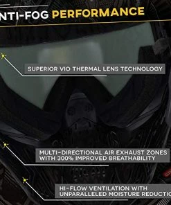 - [Anti-Fog] – VIO thermal lens tech | Hi-flow ventilation | Multi-directional air exhaust zones provide 300% improved breathability