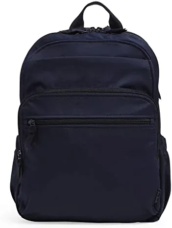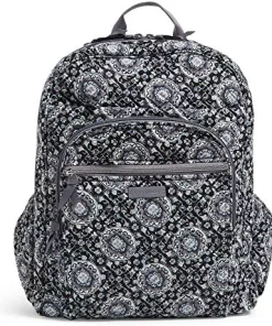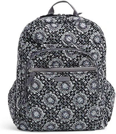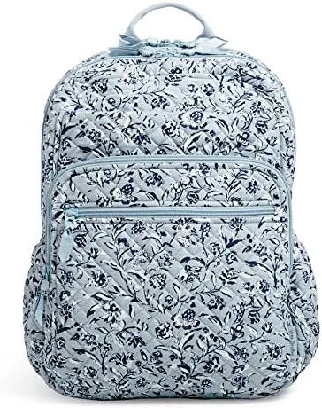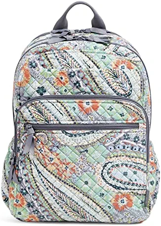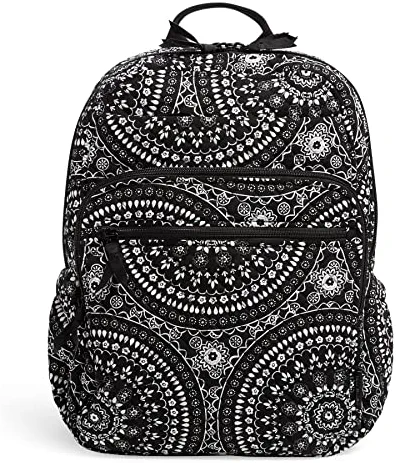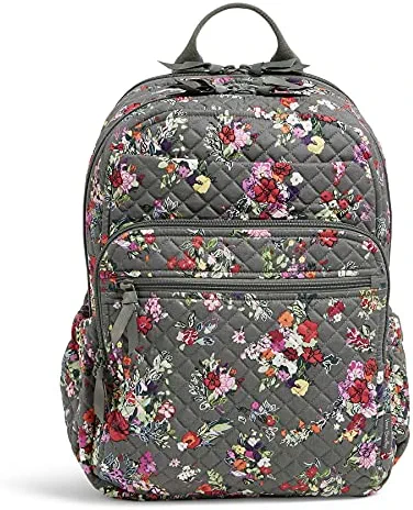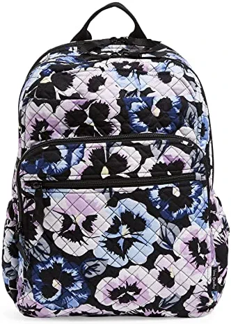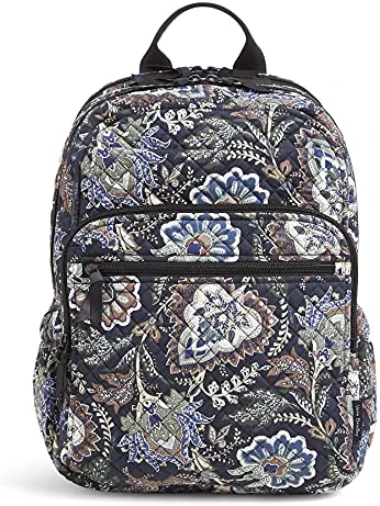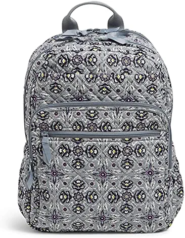 Whatever is on your to-do-list for the day, stay organized and ready to go with the Vera Bradley Cotton XL Campus Backpack. SIGNATURE COTTON — The fabric you know & love, our quilted cotton is lightweight yet durable, & comes in a variety of colorful patterns. CHIC & SECURE – Keep your tech essentials safe with 2 interior mesh slip pockets that work as laptop or tablet compartments for work or school – add in the zippered top closure & fully printed polyester lining & you’re ready to conquer the day. HASSLE FREE COMMUTE – The XL Campus Backpack is made from colorful, lightweight quilted cotton & features 2 side slip pockets, front zip pocket with hidden front horizontal pocket, main entry compartment, front compartment, laptop compartment, & a hidden back zip pocket so you can travel with ease & arrive in style. ENDLESS ORGANIZATION – The front zip compartment features 4 slip pockets, 3 pen slip pockets & an ID window to keep your essential supplies organized & quick to access. STYLISH, LIGHTWEIGHT & SIZED RIGHT – The XL Campus Backpack measures 17 inches high, 11 inches wide, & 9 inches deep with a 3 inch Top handle drop & 32 inch adjustable straps, with a trolley sleeve for smooth travels. Lined interior. 28L capacity.