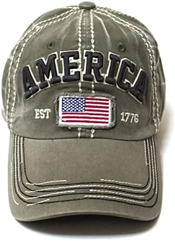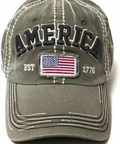 8 reviews for Flash Sale ❤️ Vintage America EST. 1776 Flag Embroidery ⚾ Baseball Hat Olive ❤️